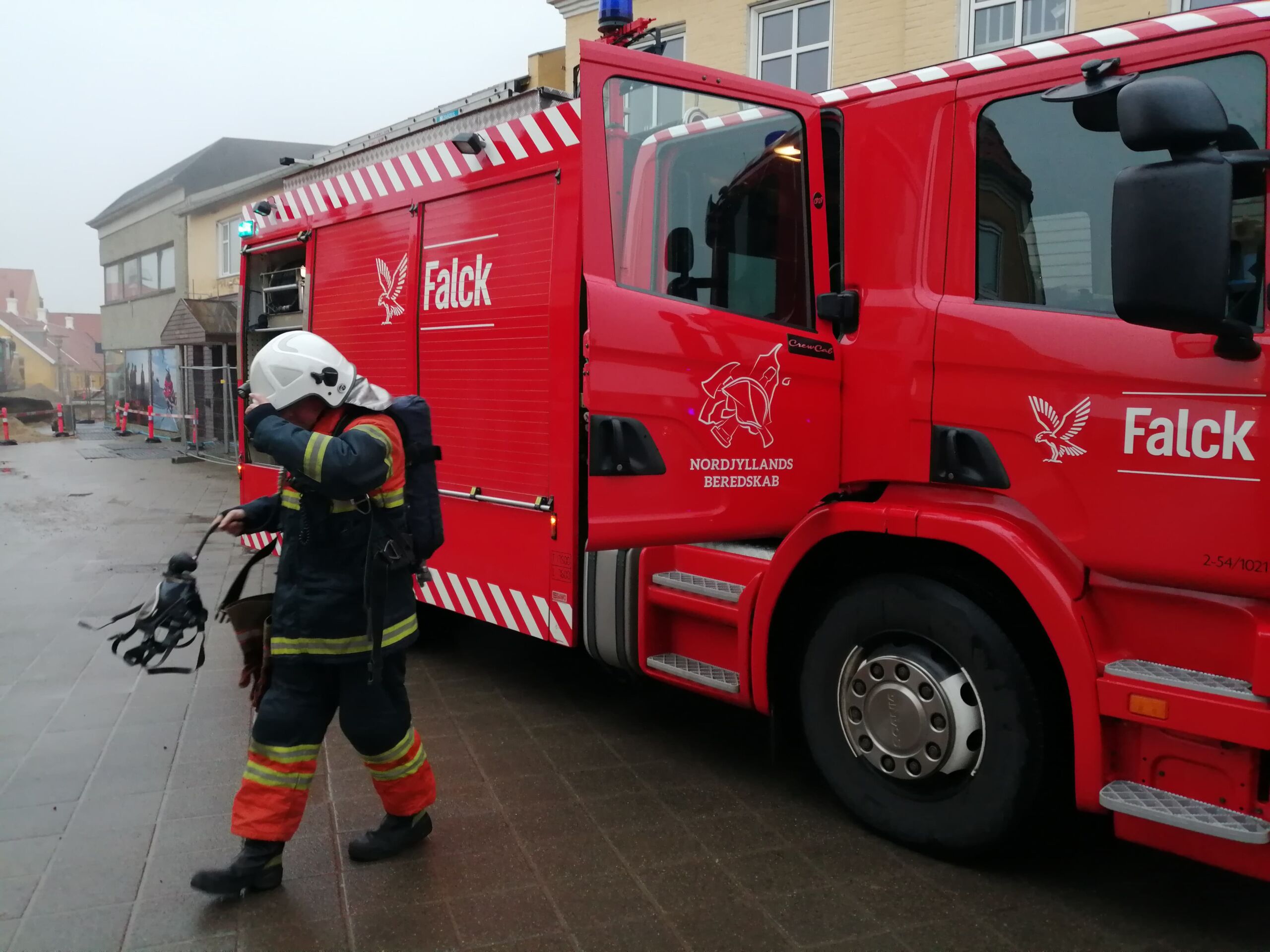 Klokken 18:15 søndag aften modtog Nordjyllands Beredskab en melding om sort røg fra det gamle slagteri i Hjørringgade i Hirtshals.