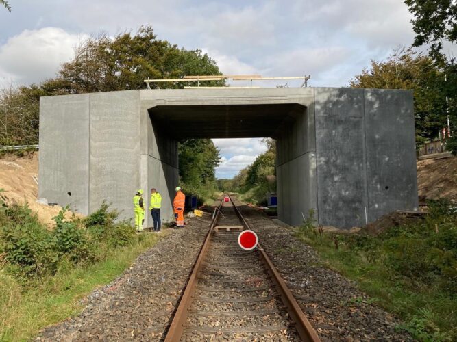 Projektet går i øvrigt planmæssigt, og vi glæder os til at kan åbne en trafiksikker krydsning af jernbanen.