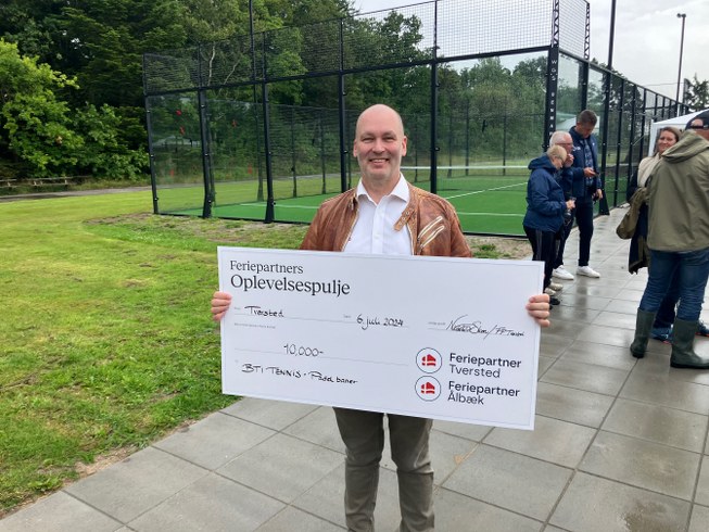 BTI Tennis har mange gode sponsorer, og blandt dem var til indvielsen lørdag mødt salgschef hos Feriepartner Tversted og Feriepartner Ålbæk, Mads Buch Jensen med en dejlig check på 10.000 kroner.