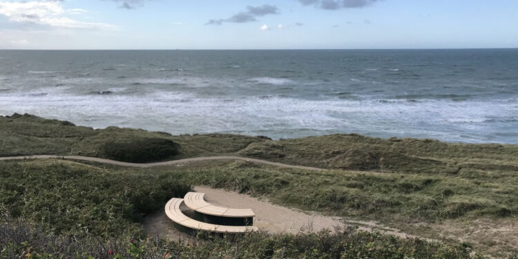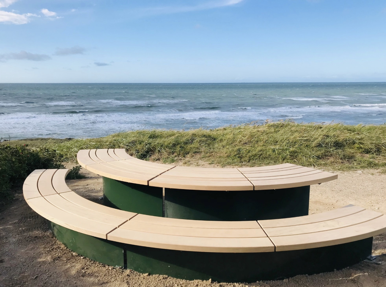 Byforum sætter nu punktum ved anlægsarbejdet for Udsigtsstiens forløb mellem Solnedgangspladsen og Hirtshals Fyr med endnu en flot version af Hirtshals Bænken, der har god plads til 8 – 10 siddende personer.