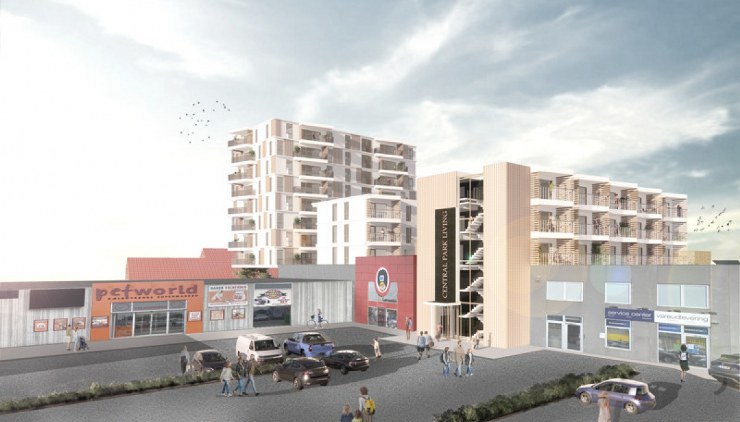 Byggeprojektet Central Park Living bliver 37 meter og dermed det højeste private boligbyggeri i Hjørring i samme luftlag som Metropol Shopping Center tæt på og ni etager højere end Føtex ved foden af byggeriet.