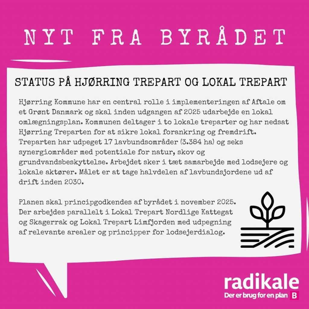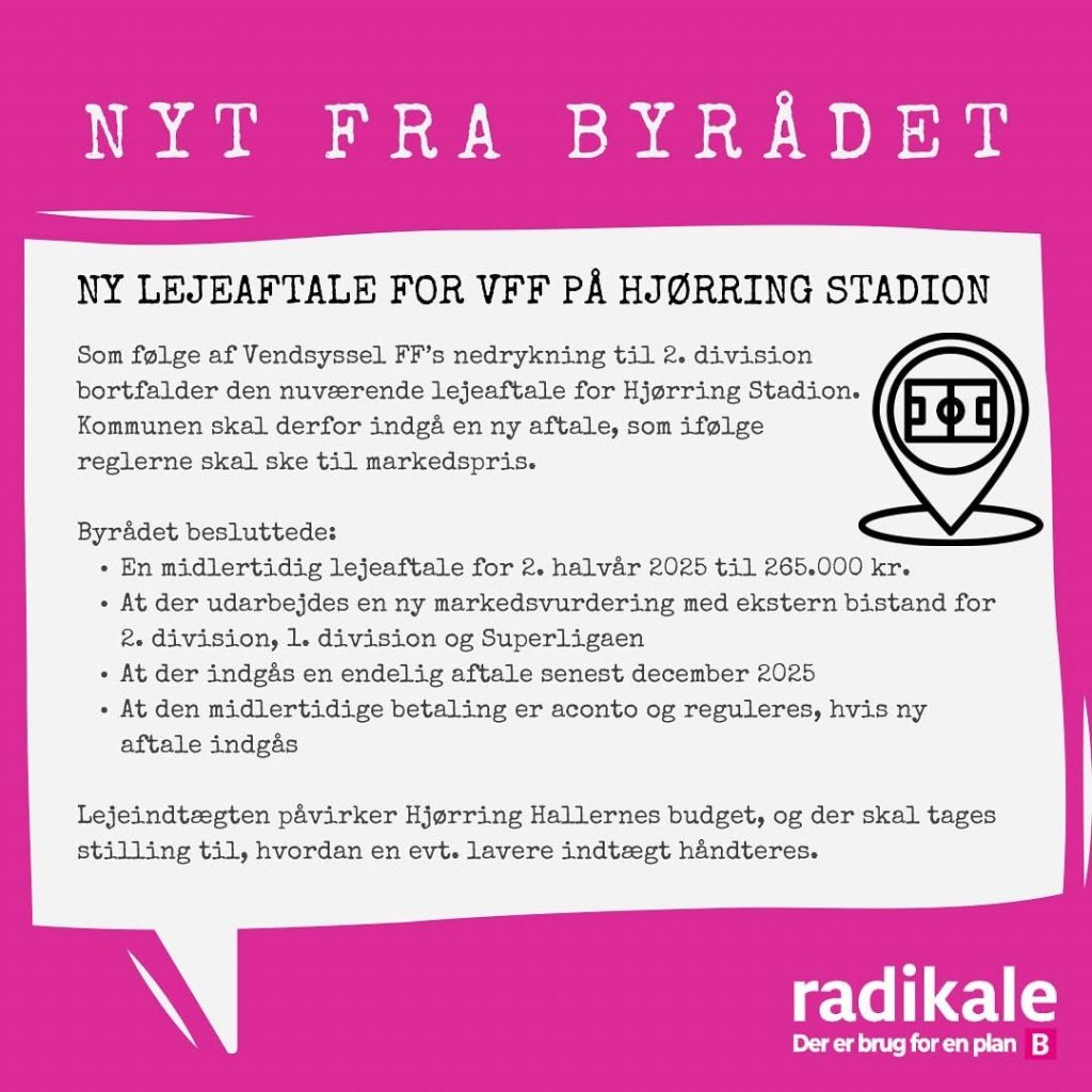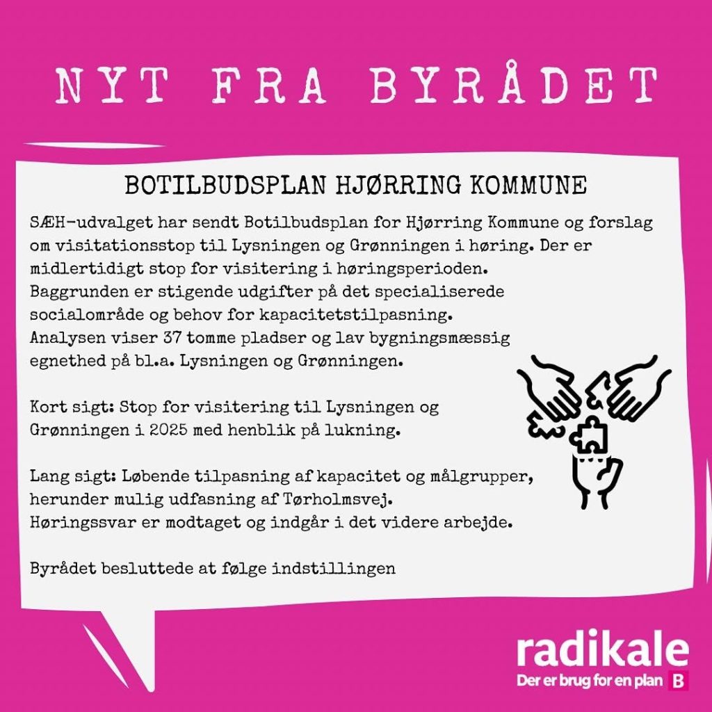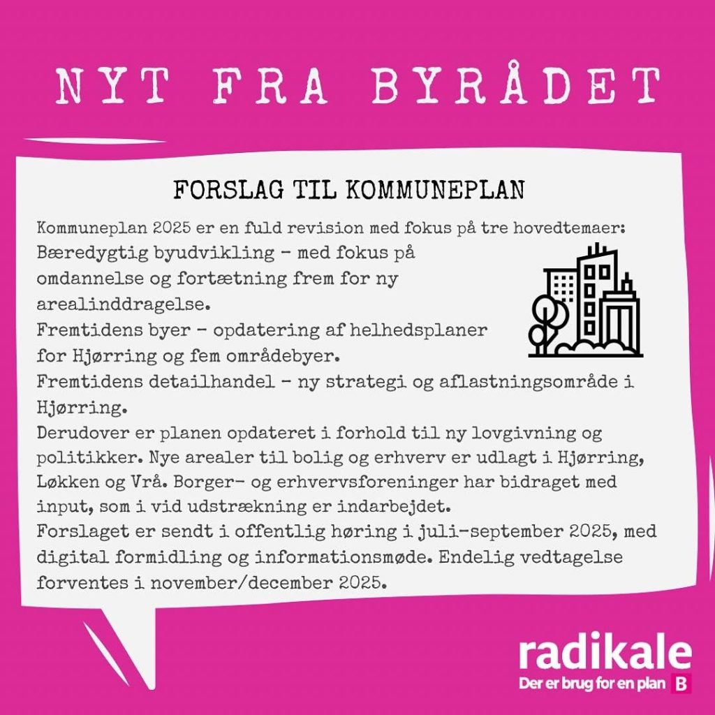 Det radikale byrådsmedlem Gry Bruun Nielsen, som er formand i BFU, leverer hver måned nogle udvalgte nedslag fra byrådsmøderne i Hjørring Kommune. Nedenfor handler det om mødet i juni måned 2025.