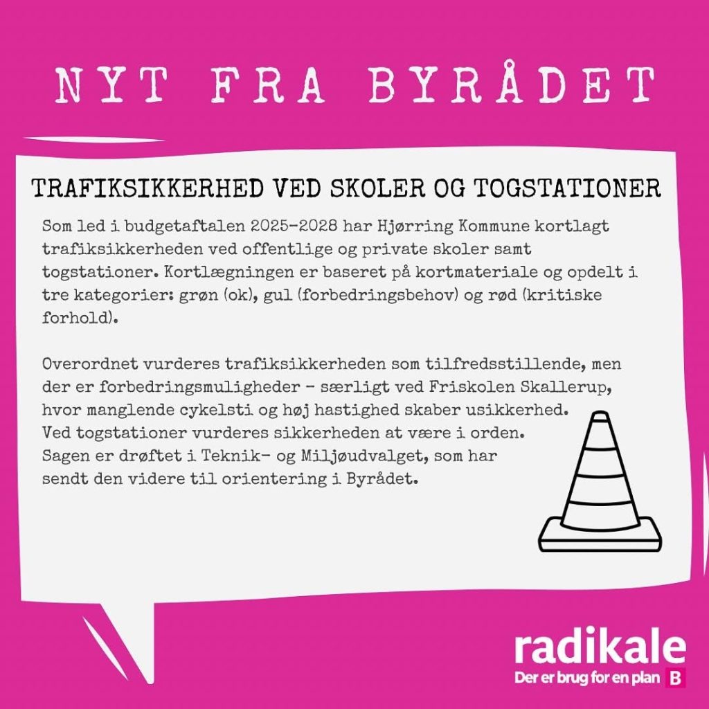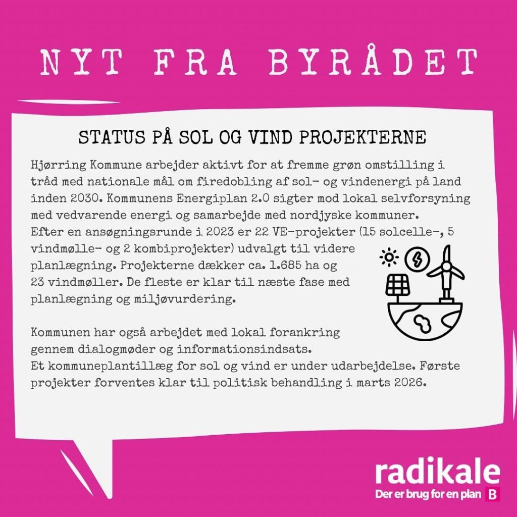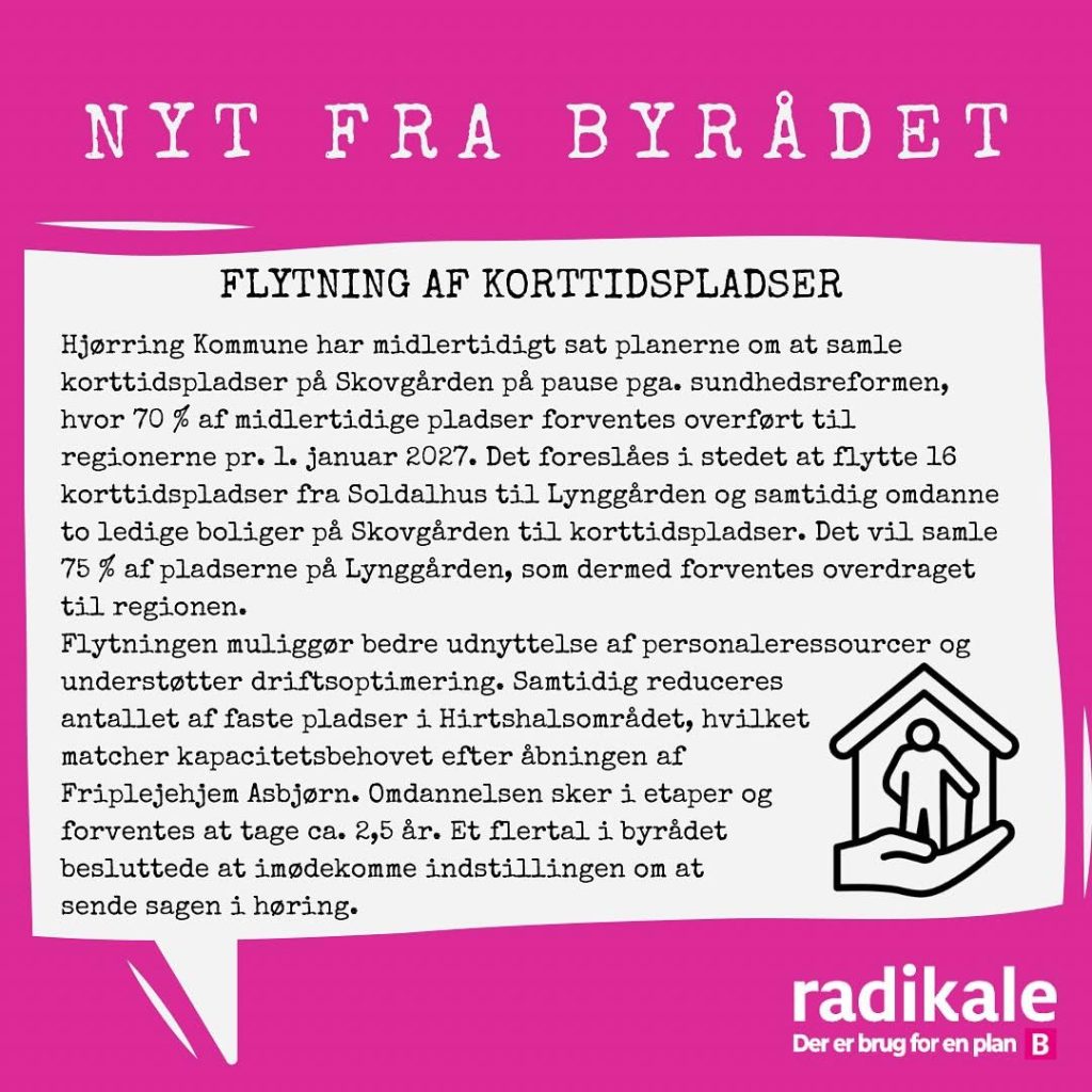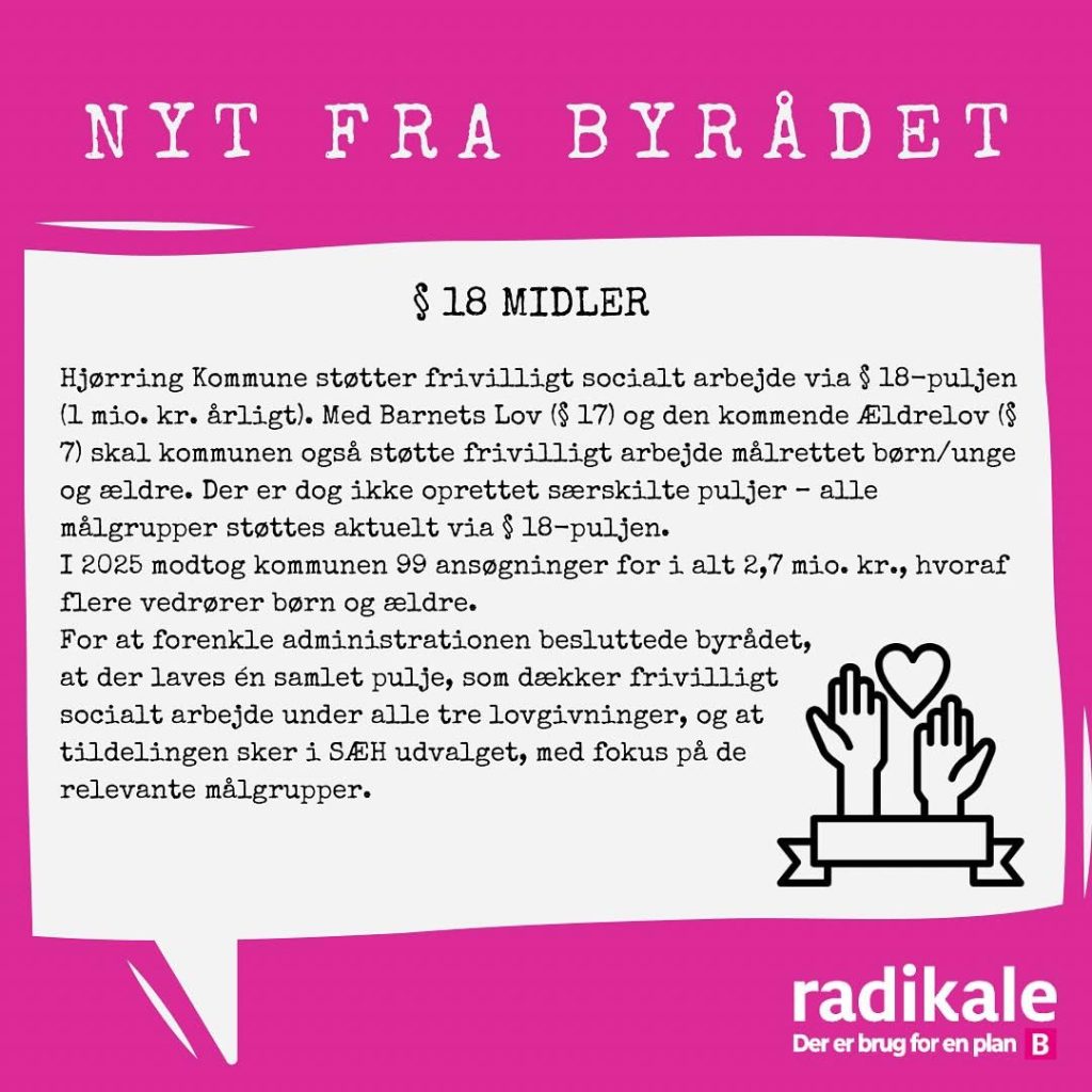 Det radikale byrådsmedlem Gry Bruun Nielsen, som er formand i BFU, leverer hver måned nogle udvalgte nedslag fra byrådsmøderne i Hjørring Kommune. Nedenfor handler det om mødet i juni måned 2025.