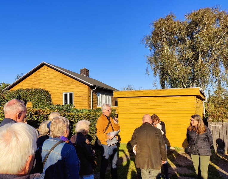 Det var et veloplagt makkerpar – Søren Thirup og Jens-Christian Hansen – der guidede os gennem den bydel – omkring Idræts Allé og Norgesvej – som FBL har ønsket optaget i kommuneplanen som et kulturmiljø med fokus på almennyttigt boligbyggeri fra perioden umiddelbart efter 2. verdenskrig til slutningen af 50-erne… området emmer af historie og tænkte tanker om en bedre tilværelse, og de to guider hjalp os til at få det store overblik samt indblik i detaljer krydret af formand Søren Thirups personlige oplevelser fra barndommen…