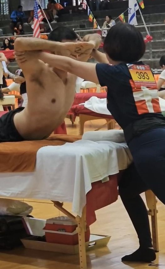 Der var adskillige vidt forskellige discipliner, men Chanunshida Kliking deltog sammen med 95 andre massører i sportsmassage, hvor hun på fornem vis repræsenterede Danmark.