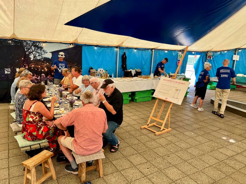 I teltet ”Skibet”. Pris 150 kr. Anretning købes på dagen.