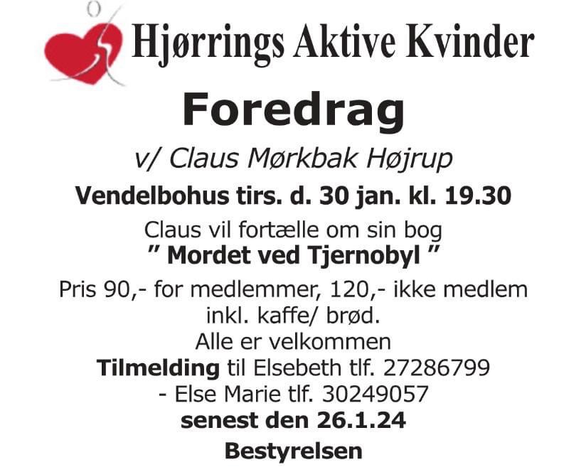 – Jeg vil fortælle om mine oplevelser, refleksioner og indtryk fra dette unikke sted, der blev berømt efter katastrofen. Jeg vil også præsentere min efterfølgende roman, Mordet ved Tjernobyl, der blev inspireret af mine oplevelser, fortæller Claus Mørkbak Højrup.