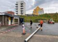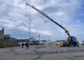 Den selvstændigt erhvervsdrivende Claus Neve Olsen, som også er ansat ved Hirtshals Redningsstation, kom i dag forbi, da de første skridt blev taget til at få rejst teltet Bølgen til åbningen lørdag af Musik Under Trappen.