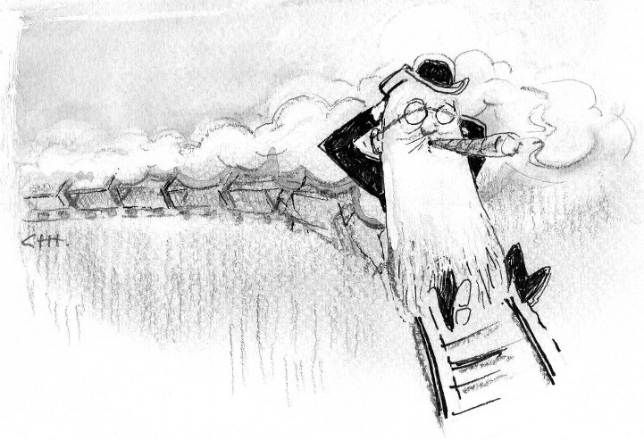 Tegningen ovenfor er udført af Chr. Hansen fra Tornby. Th. Stauning foretog nemlig den 6. maj 1926 en “rejse” med mergelbanen fra Eskjær til Tuen, hvor han skulle besigtige statsskoven Tversted Klitplantage.