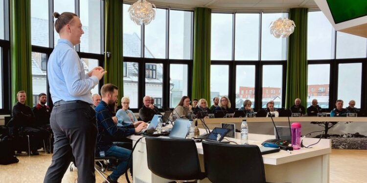 Sammen med nogle kollegaer var bygningskonstruktøren med til at organisere og afholde en temadag forleden, hvor flere end 60 personer deltog for at høre om arbejdsprocesser, optimeringer og succeshistorier samt netværke på tværs. Ovenfor ses han stående i byrådssalen på Rådhuset.