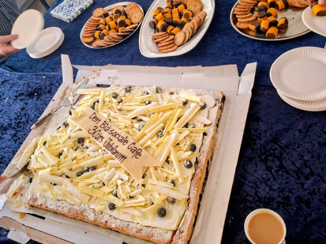 Efter talerne blev der budt på et overdådigt kaffebord, der samlede gæsterne i hyggeligt samvær. Lagkagehuset i Hjørring havde sponsoreret en stor flot lagkage, og derudover var der både kringle og småkager til de mange fremmødte.