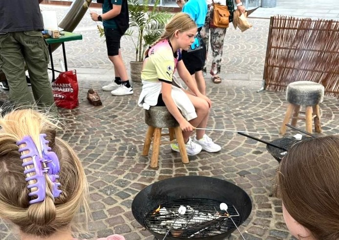 Hjørring Handel havde onsdag med Sommerby Hjørring ægte lejrbålsstemning på Springvandspladsen, hvor mange børn hyggede sig med snobrød, popcorn, pandekager og skumfiduser.