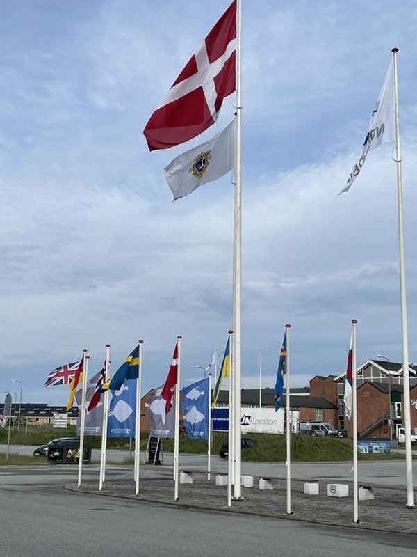 Foran Nordsøen Oceanarium, Hotel Skaga og i byens gader ses fredag og lørdag danske, men også en del udenlandske flag.