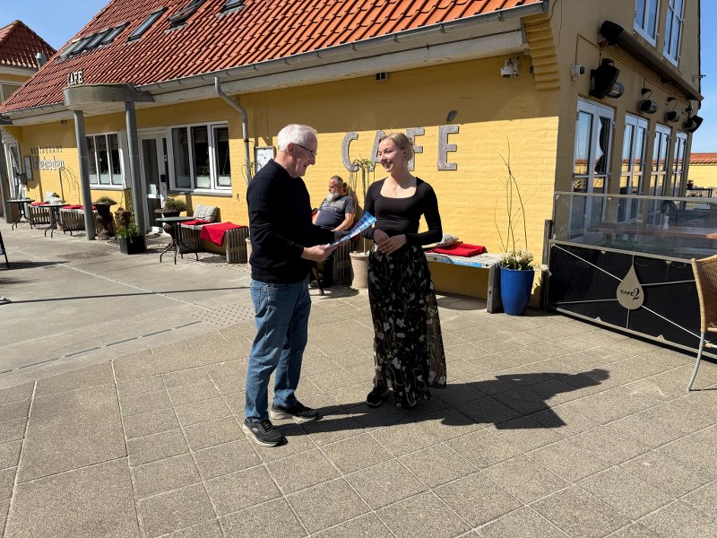 Handelschef Per Martensen og bestyrelsesmedlem Pernille Ramberg fra Hirtshals Handel & Erhverv foran Lilleheden Café & Restaurant. Foto (arkiv): Niels Skipper.