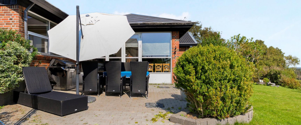 Den skrånende plæne giver frit vue over selvsamme marker, der kun brydes af sporadiske træklynger, som besøges af lystige fugle – den perfekte udsigt, hvis I sætter pris på idyllen. Og udsigten kan meget passende nydes fra terrassen, når I har brug for en læskende forfriskning i sommervarmen, og det bemærkes også, at ejendommen gemmer på et drivhus, værksted og en mindre overdækket terrasse, der fungerer som velkomstparti.