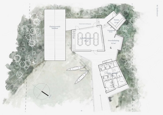 Bygningerne indeholder bade- og toiletfaciliteter, sauna, indendørs opholdsrum, overdækning, og udendørs opholdsarealer med videre. Projektet indplacerer sig smukt i klitlandskabet og består af mindre enheder, der med sin nedbrudte skala er med til at respekterer den unikke omkringliggende natur.