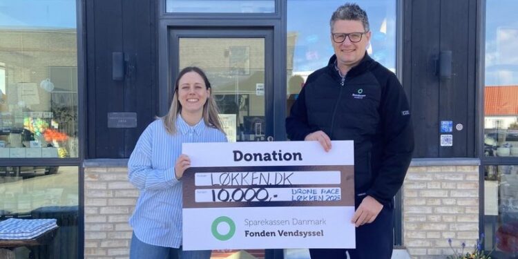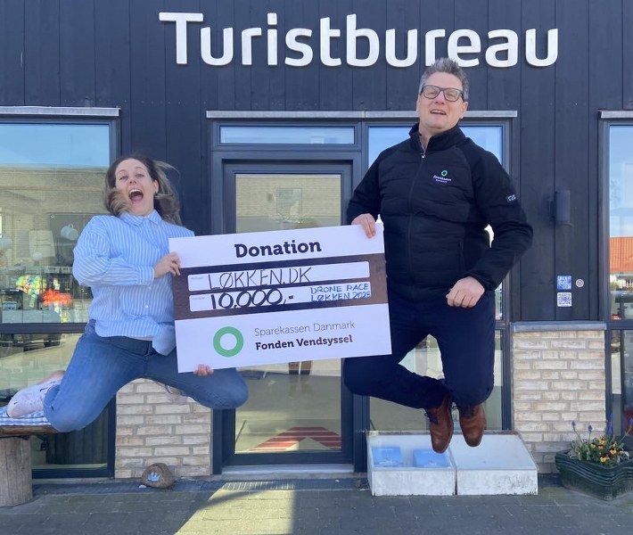 Forleden modtog Turistkontoret under VisitNordvestkysten i Løkken en flot donation fra Sparekassen Danmark Fondene til arrangering af Drone Race.