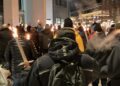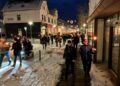 Derfra gik fakkeloptoget videre af Jernbanegade, hvor baggrunden blandt andet var Vendsyssel Teater, som byrådspolitikerne og dermed kommunen årligt støtter med flere millioner kroner. Kommune betyder i øvrigt fællesskab.