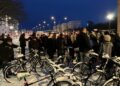 Faklerne blev uddelt og tændt ved banegården, hvor Hjørring Kommune i partnerskab med DSB Ejendomme ejer og udlejer en række flotte lejligheder i www.stationsboligerne.dk.