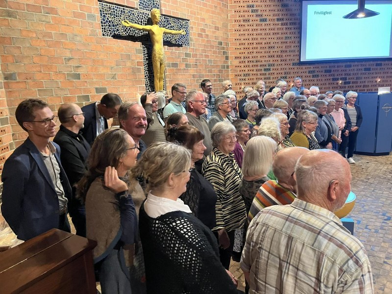 Kirkens Voksenkor sang, der var takketaler – og ikke mindst, så byggede de sammen en kirke, der symboliserede de mange arbejdsgrene, vores kirker består af.