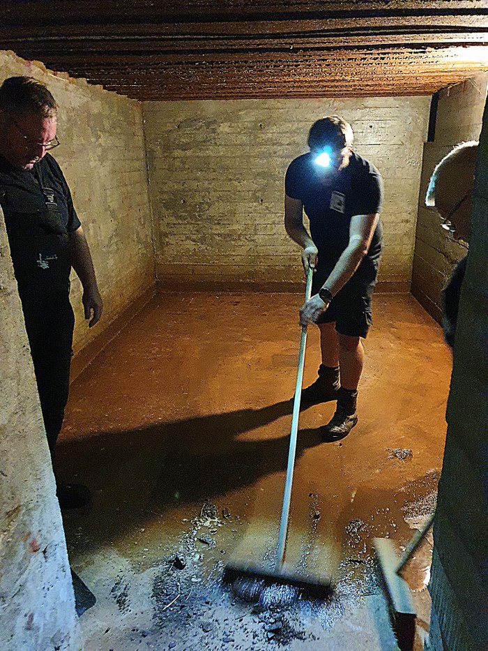 Kost og spand, pærer og lampeglas, var hovedingredienserne i aftenens bunkermøde hvor en fuldtallig Bunkergruppen Hirtshals tog hul på den årlige hovedrengøring af bunkerne ved Bunkermuseet i Hirtshals.
