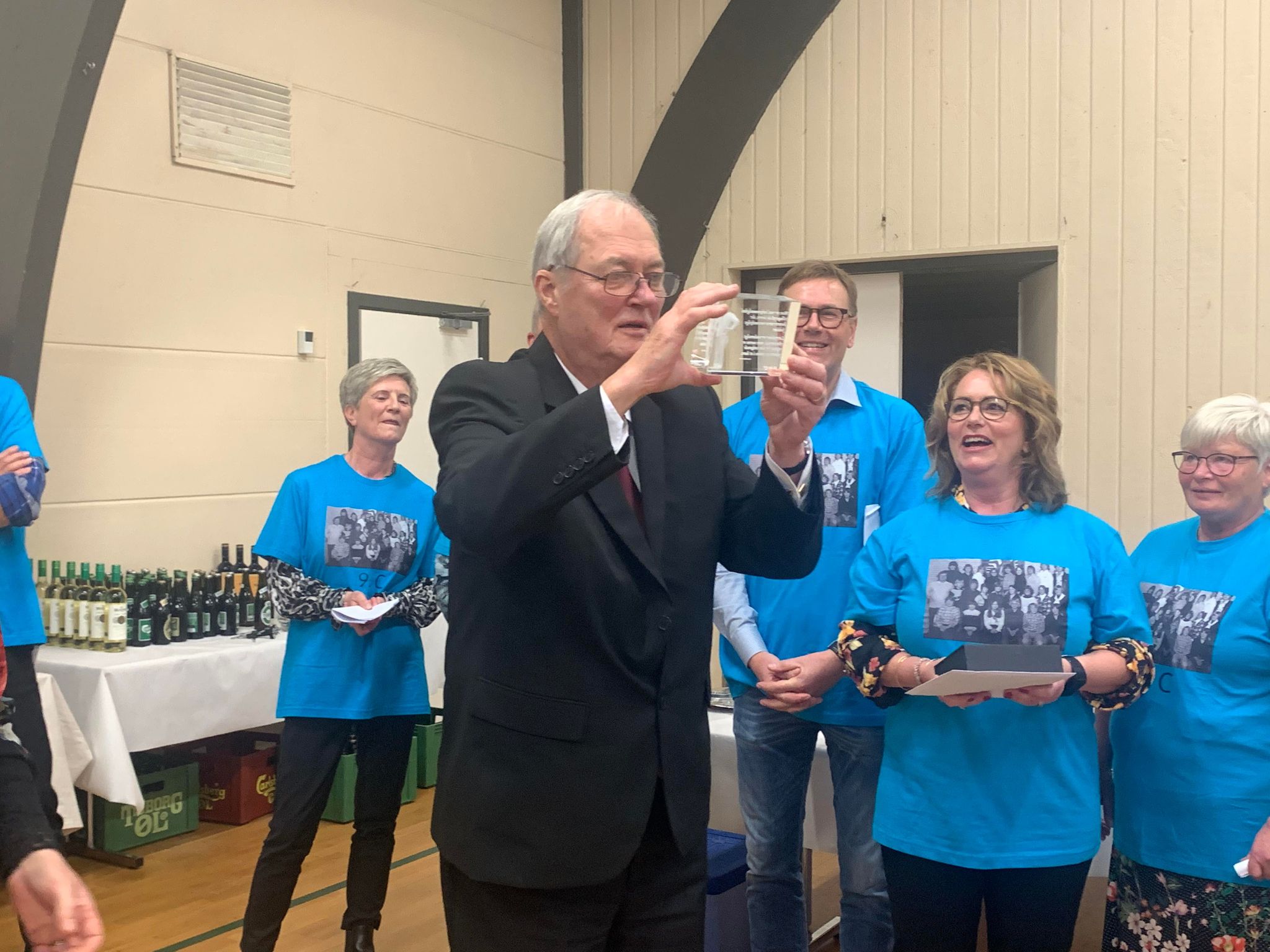 Elever fra årgang 1978, som var 9. C på Ulvkærskolen, samt familie og venner var lørdag eftermiddag forsamlet i Asdal Sognegård for med brask og bram at fejre Egon Christensen. Fredag fyldte den pensionerede skolelærer nemlig 80 år.