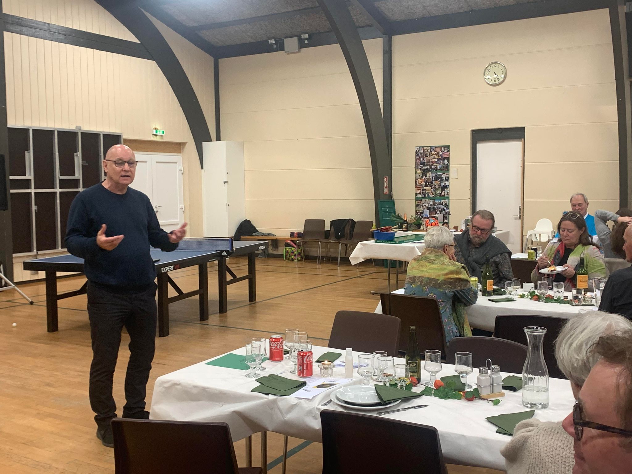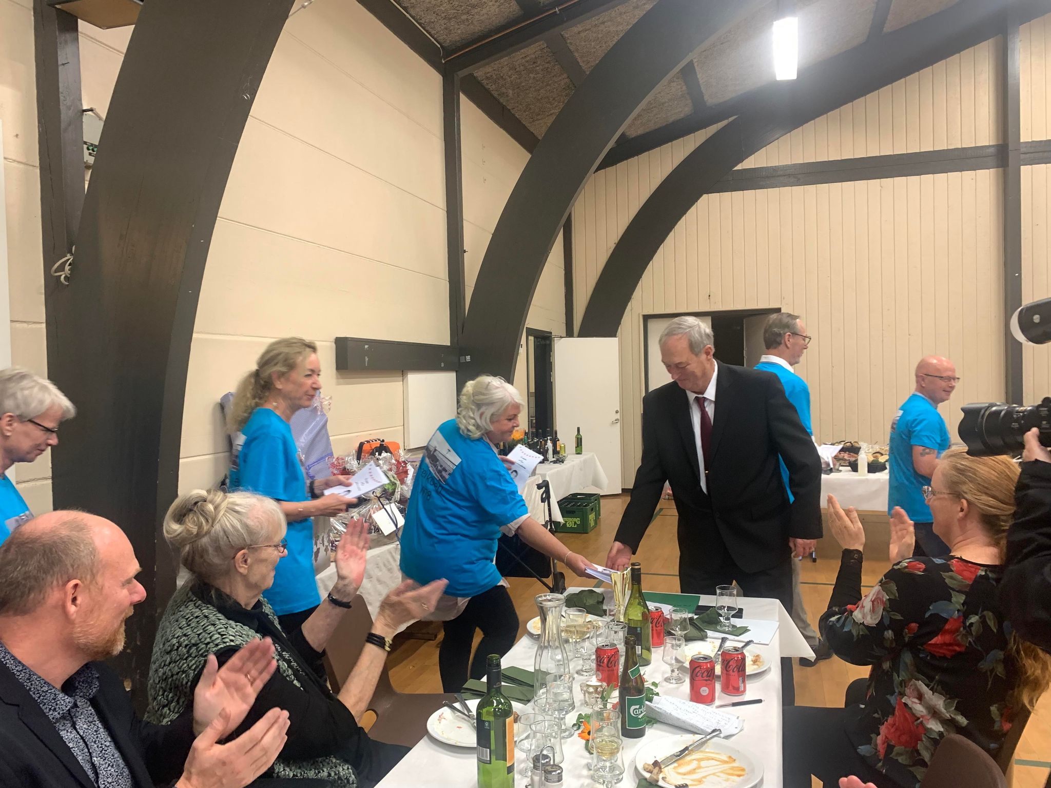 Som æresmedlem af bordtennisklubben B75 fik Egon Christensen selvfølgelig også en munter og varm tale med på vejen af Lars Rokkjær. Mødet med den engagerede lærer blev nemlig skelsættende og retningsgivende for ham og mange andre elever. Ligesom der var indslag fra familien, der talte smukt om relationerne til fødselaren.