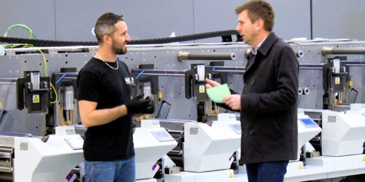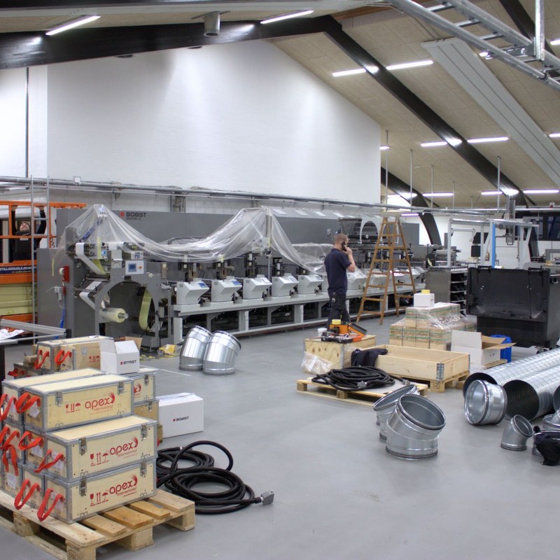 – Vores nye trykmaskine er nemlig blevet leveret. Det har krævet lidt af hvert, men med hjælp fra dygtige mennesker fra Sverige, Italien og Hjørring har vi endelig fået maskinen på plads. Dermed kan vi nu for alvor tage vores flexo produktionshal i brug, fortæller Jan Viberg på LinedIn.