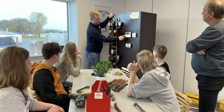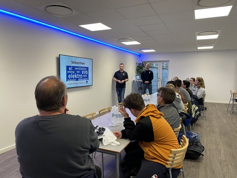 Erik Lytzens el-projektleder Nikolaj og VVS-serviceleder Emil gav eleverne et godt og lærerigt indblik i den lokale arbejdsplads, og hvad det vil sige at arbejde som elektriker og VVS’er.