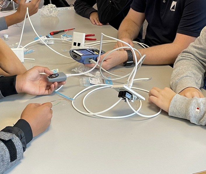 Eleverne fik også lov at prøve kræfter med begge fag, da de fik en praktisk opgave, hvor de skulle samle et netværksstik samt lave to rørsamlinger, en gevindsamling og en pressamling.