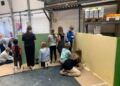 Ankommet på matriklen blev begge kasser budt velkommen af Mette, som er en af firmaets ejere og formanden Morten. Dernæst blev klasserne delt. 5. A startede i kantinen, mens 5. B skulle begynde med at male.