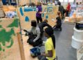 Efterfølgende var klasserne på besøg hos Bygma, hvor Claus fortæller om, hvad butikken handler med og noget om priserne. Bygma er en dansk kæde, fortæller han videre. Eleverne har rigtig mange spørgsmål.