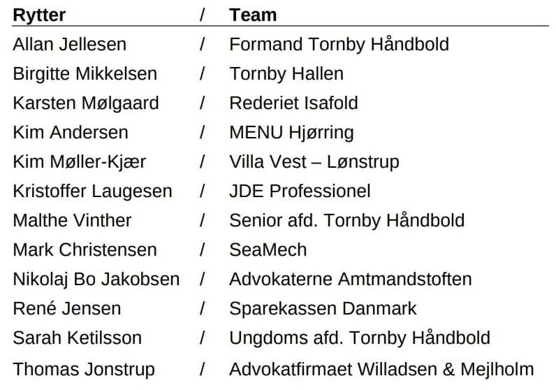 Alle er velkommen til at kigge forbi og heppe på de 12 seje og frivillige ryttere, der sammen vil cykle penge ind til klubben Tornby IF Håndbold.