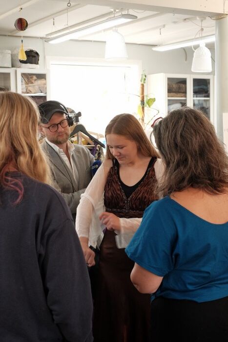 “Alt tøj har signaler, så vi skal finde noget med lidt Læsø i sig, men samtidig også noget som Emma, kan lide” forklarer underviser og designer Lene Schøning.