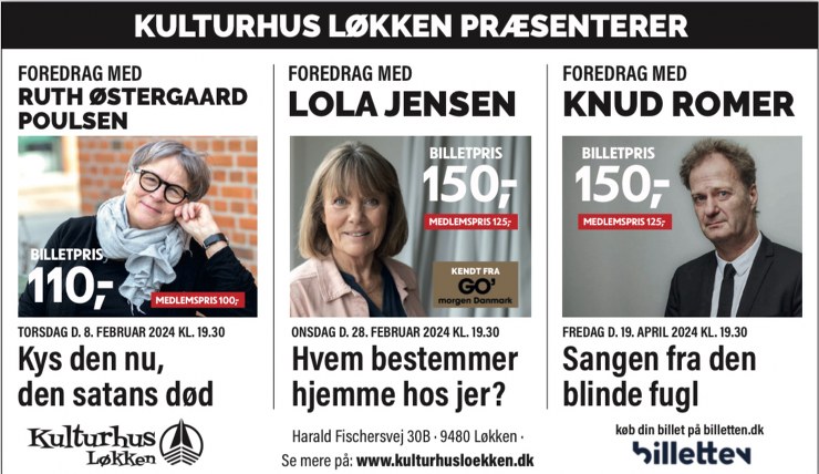 En perlerække af kendte foredragsholdere besøger Kulturhus Løkken i 2024