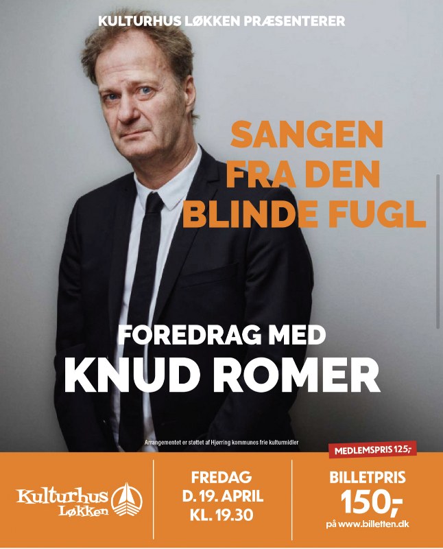 I april kommer prisvindende forfatter Knud Romer med helt nyt foredrag ”Sangen fra den blinde fugl”. En fortælling om hans liv, forfatterskab og den videre færd.