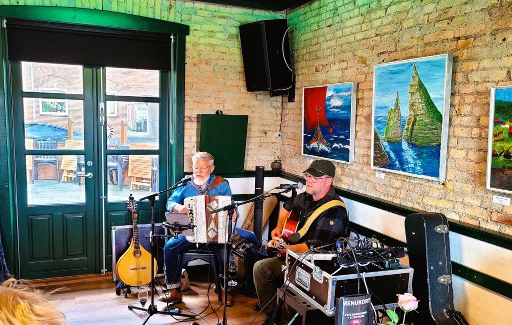 I hvert fald steg Per Clausen af toget i Vrå, og mens han gjorde sig klar, blev de fremmødte underholdt af musikerne Peter og Lasse, som til dagligt er medlemmer af orkestret McGuinness, der gør i et bredt udvalg af irske og danske viser…