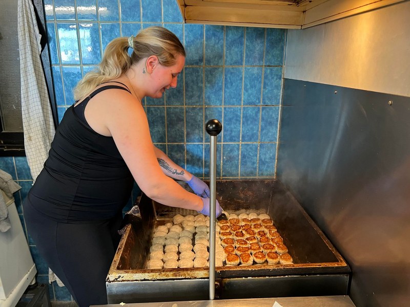 Denne onsdag er det blandt andre Mette og Rikke, der hjælper til med arbejdet i butikken på Norgeskajen.