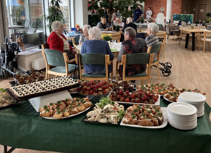 Efter at alle efter talerne havde fået lejlighed til at se skulpturen i haven, bød husets Café VIKA på lækkerier og kager til alle.
