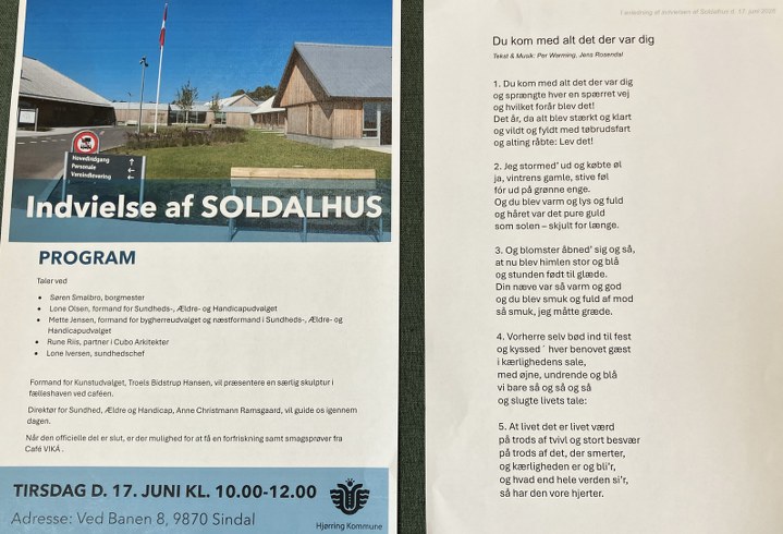 Tirsdag den 17. juni 2025 markerede Hjørring Kommune en milepæl i udviklingen af ældre- og sundhedsområdet i Hjørring Kommune med officiel indvielse af det nye ældrecenter Soldalhus i Sindal.