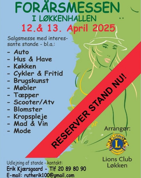 Det går forrygende godt med salg af stande til Forårsmessen 2025 i Løkken, og der er snart udsolgt af standpladser, oplyser arrangørerne Lions Club Løkken.