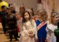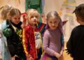 Marianne spillede op til fastelavnssang og -dans for alle klasserne, og D1 genlød af tonerne fra ”Fastelavn er mit navn” og ”Kan du gætte hvem jeg er” hele formiddagen og sågar over middag, hvor det var 3. klassernes tur.