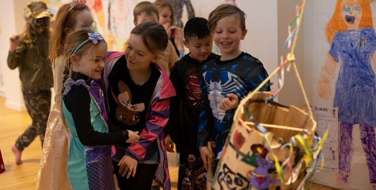 Kunsten på væggen skulle vise, hvor forskellige vi alle sammen er, og det kunne ikke være en mere passende baggrund for de mange forskellige udklædninger og flotte fastelavnskostumer, da indskolingens børn indtog salen med højt humør