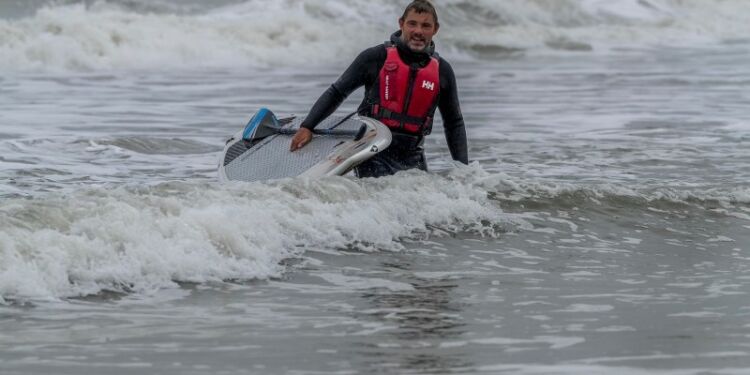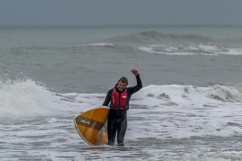 Mads Halle Bruun hos Surf & Natur i Hirtshals kunne fredag, før blæsten for alvor tog fat og fik fart, fejre sin såkaldte færgebølge nummer 50, som afstedkommes af Fjord Lines hurtigfærge FSTR.