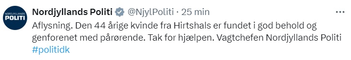 Lykkeligvis er kvinden kort tid efter blevet fundet.