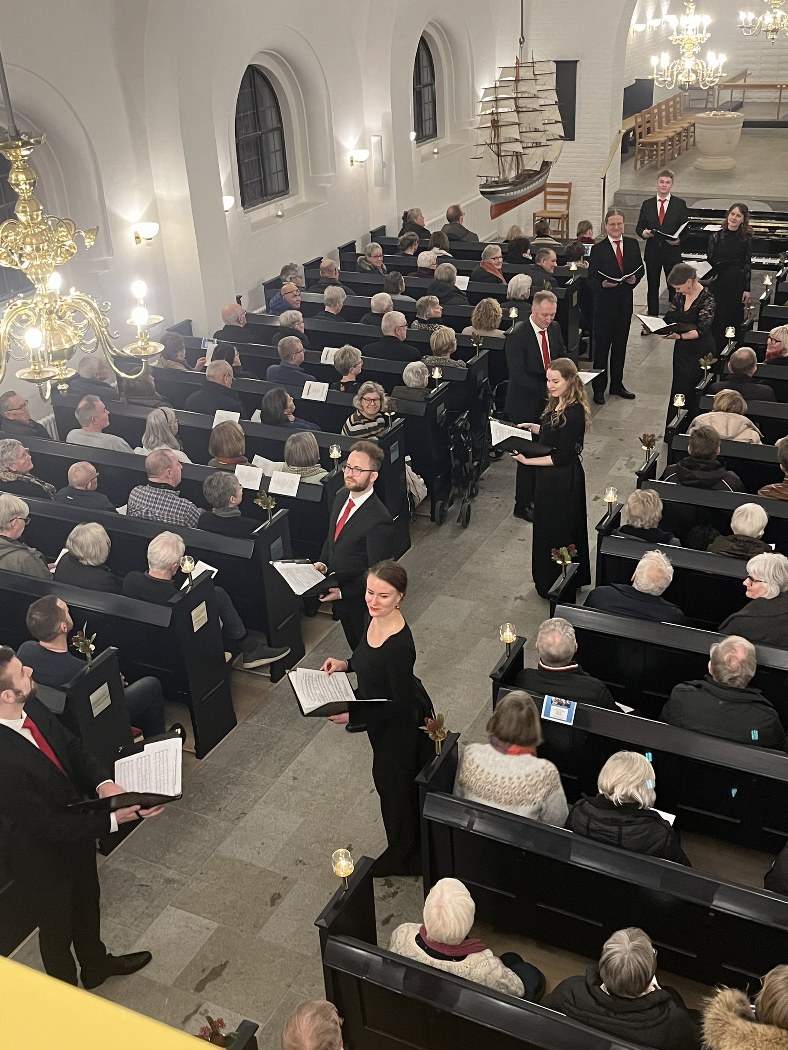 – Vores smukke julesalmer fik en helt ny klang fra både kor og solister, men koret mestrede også både tysk, svensk og engelsk julemusik og en enkelt helt personlig julegavesalme. Koret bevægede sig frit rundt i kirkerummet, så sangerne kom helt tæt på, magisk, tilføjer Bente Nedergaard.