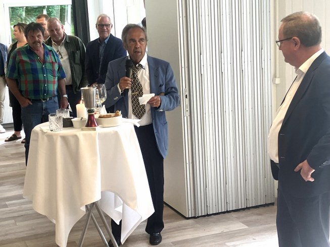 Jørgen Haldrup Petersen takkede for det store fremmøde, gaver og den store interesse i forbindelse med, at han snart ikke længere er en af de cirka 59.000 medarbejdere i Salling Group.
