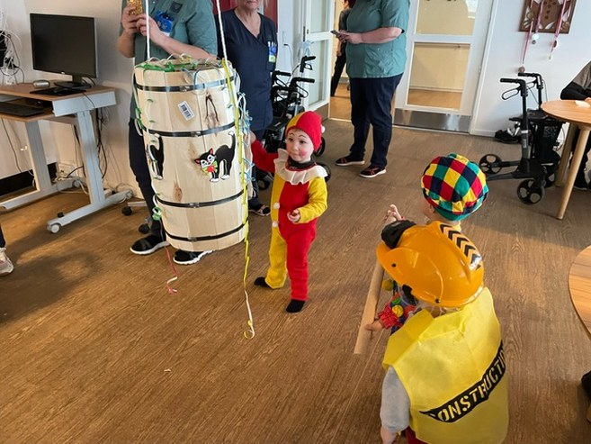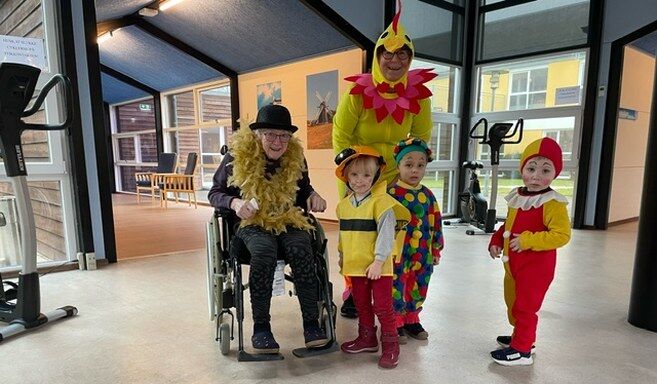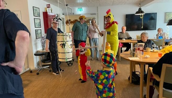 Den private pasningsordning Guldsmeden i Hirtshals har torsdag formiddag været til fastelavnsfest hos vennerne på Ældrecenter Lynggården.