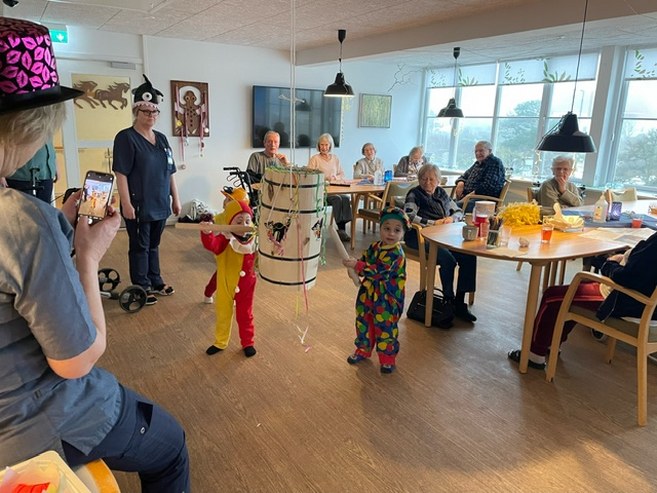 Den private pasningsordning Guldsmeden i Hirtshals har torsdag formiddag været til fastelavnsfest hos vennerne på Ældrecenter Lynggården.