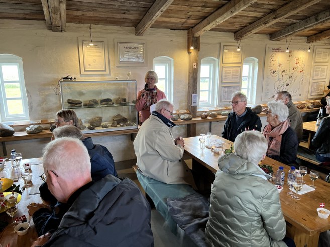 Formanden brugte imidlertid ikke mange ord endsige lang tid på at fortælle om historien bag stedet og de mange udstillinger, men henviste fornuftigvis i stedet til hjemmesiden for Hirtshals Fyr, der også har menupunkter for blandt andet både Støtteforeningen og lige præcis Kunst på Fyret.
